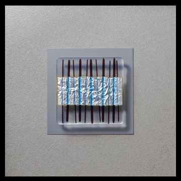 glass rods of brown and turquoise to cross a river of textured silver leaf to